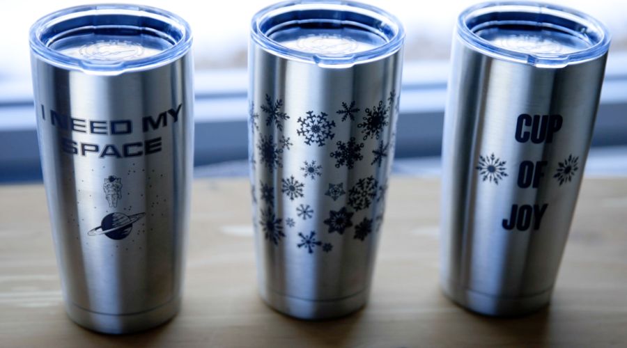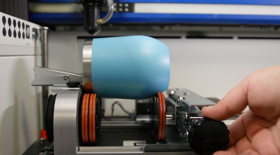 If you’re engraving smaller graphics on multiple tumblers, you can also use an optional 4″ lens to process several pieces at once. Just keep in mind that your artwork will need to be 2.75″ or smaller to maintain proper focus across the surface. You can check out the process for multiple tumbler engraving here.